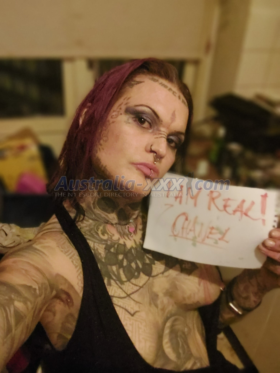 Very tattooed, big breasted, transgender